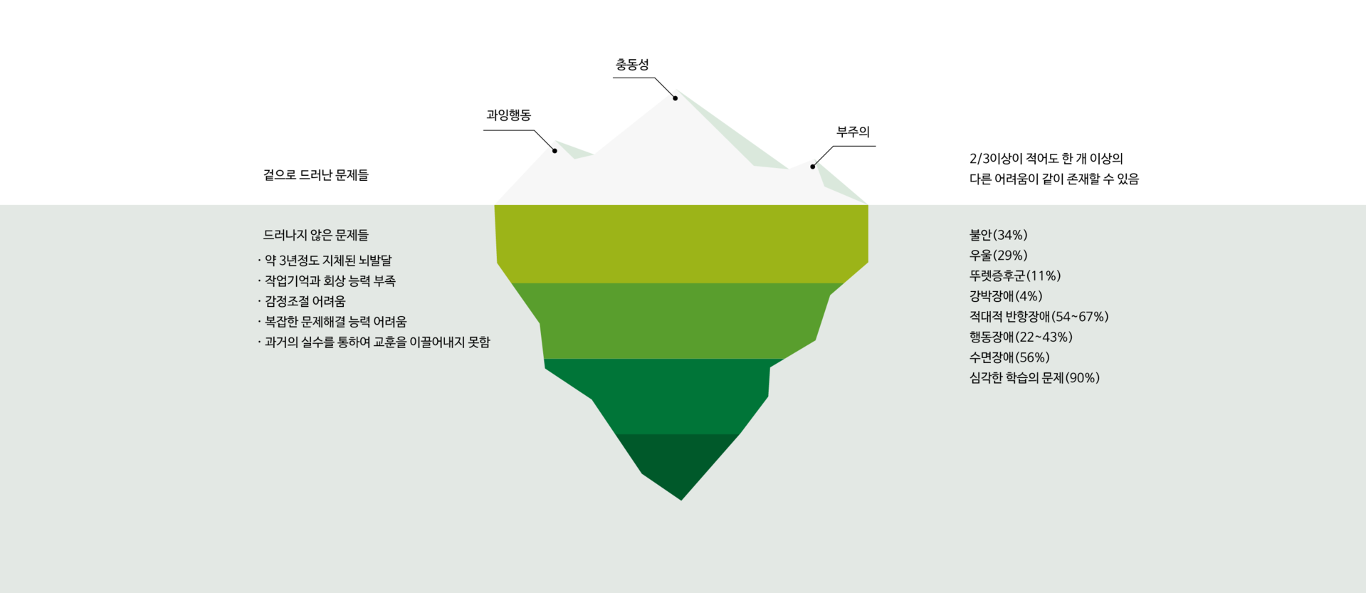 ADHD/ADD 부모학교는 수면 아래의 빙산처럼 드러나지 않은 문제들을 알아봄으로써
